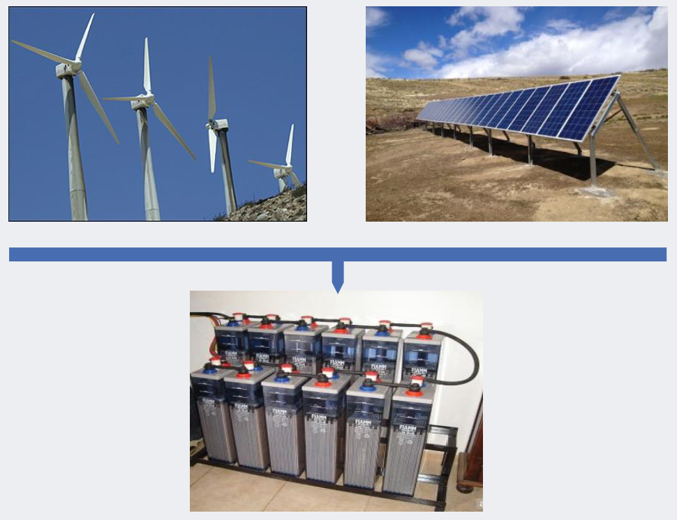 Almacenamiento en baterías estacionarias. Sistemas de 12 Vcc, 24 Vcc , 48 Vcc y 220 Vca .